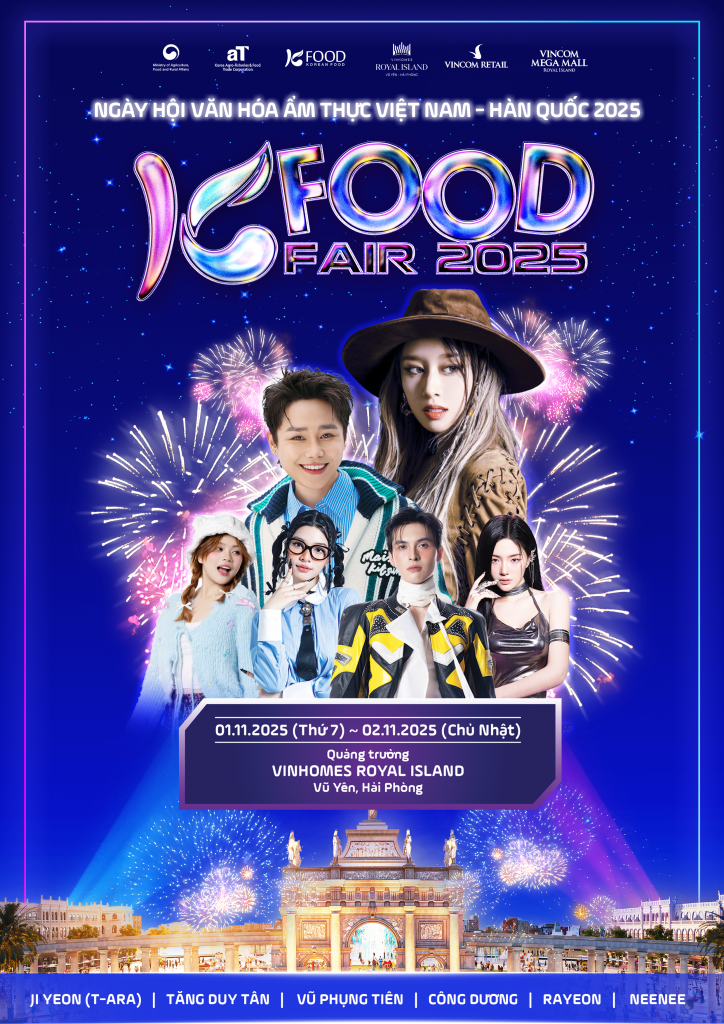 Trong hai ngày 01 và 02 tháng 11 năm 2025, tại khu đô thị Vinhomes Royal Island, Vũ Yên, Hải Phòng, sự kiện K-Food Fair Việt Nam 2025 đã diễn ra sôi động và thành công, thu hút hàng chục nghìn lượt khách tham quan.
